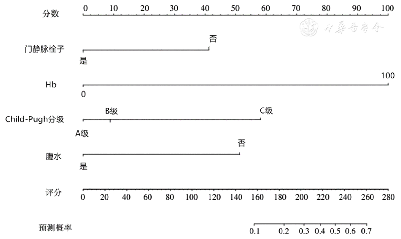 李欣忆, 李娇娇, 孙蔚. 肝硬化食管胃底静脉曲张破裂出血患者经颈静脉肝内门体分流术后发生显性肝性脑病的列线图预测模型建立及评价[J]. 临床肝胆病杂志, 2024, 40(8): 1605-1611.