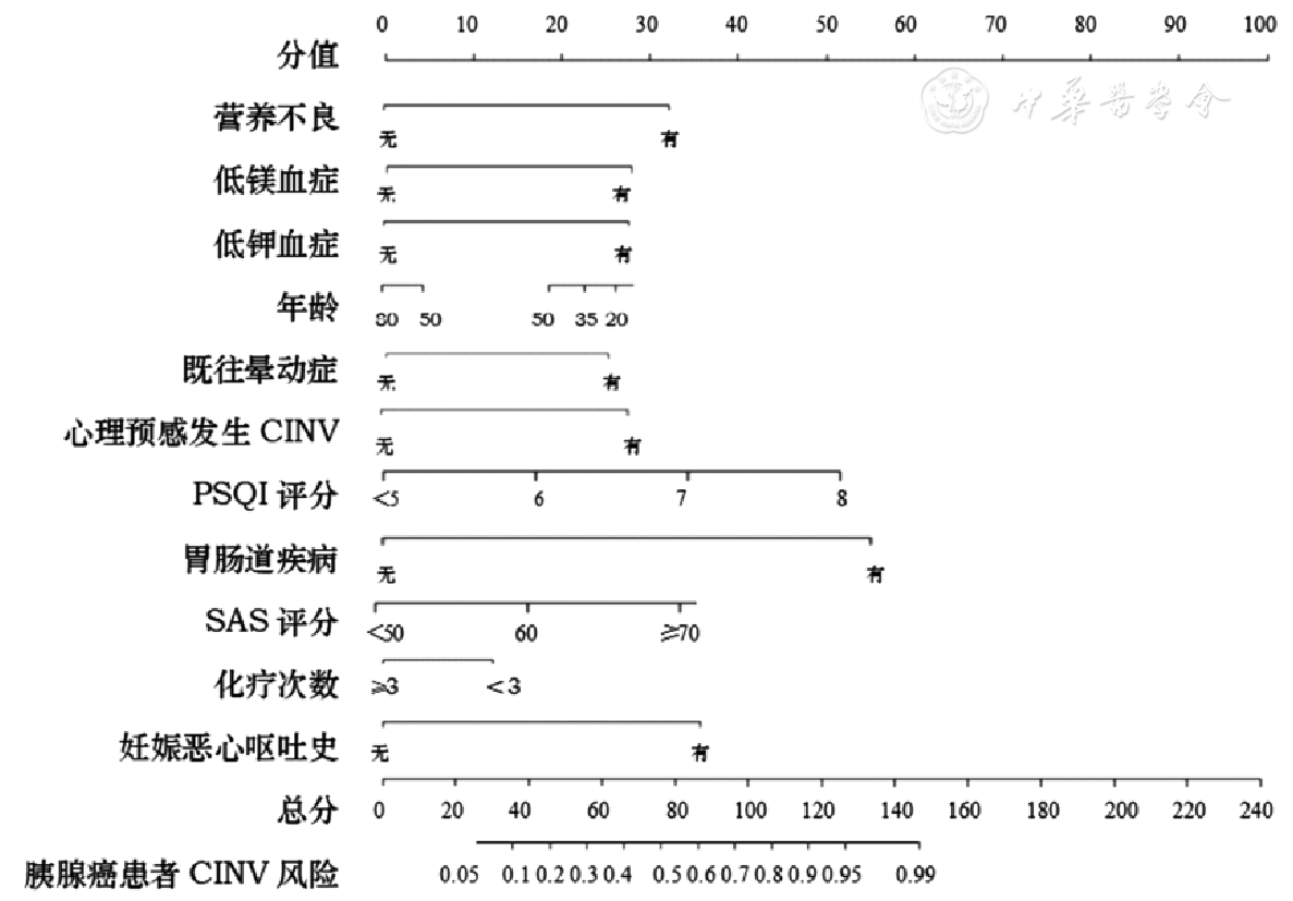 魏浩洁, 武东, 黄灿, 等. 乳腺癌患者化疗所致恶心呕吐预防失败的危险因素分析与预测模型建立[J]. 中国医院药学杂志, 2024, 44(23): 2761-2767.